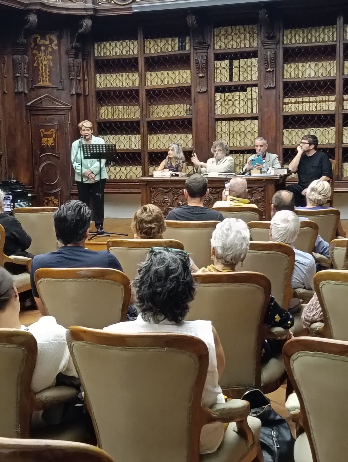 Maria Carla Papini introduce. Al suo fianco Anna Dolfi